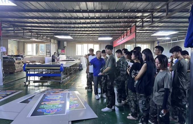 在老师的带领下,同学们来到了创鑫时代广告公司。公司的工作人员热情地接待了同学们,并为大家详细介绍了广告公司的各个部门及其职能。在讲解员的引导下学生们近距离观察了生产线的运作流程,了解了产品从设计到成品的整个生产过程,使同学们更加直观感受企业运营环境。
