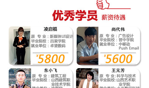 我们了解企业需要什么技能的人才,也了解学员存在的难点与问题,真实的项目讲授,新的设计理念,全面的知识体系,强大的授课式重点定义界面设计培训新标准。